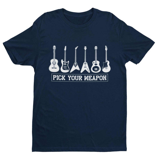 Pick Your Weapon Guitar T Shirt Funny Musician Gift Idea Guitarist Player Funny