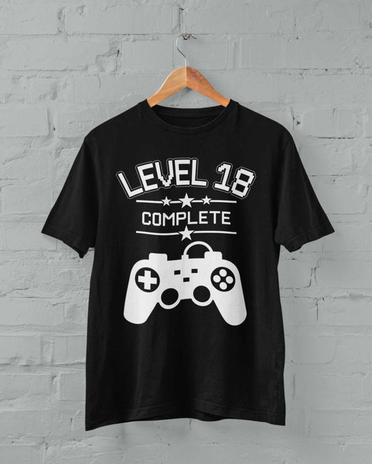 Funny 18th Birthday T Shirt Level 18 Complete Gamer Themed Gift Idea Gaming