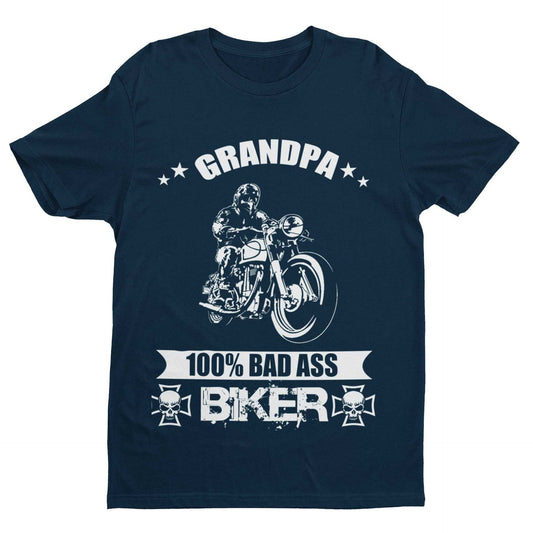 Biker Grandpa T Shirt 100% Bad Ass Biker Funny Gift Idea Grandad Motorcycle Bike