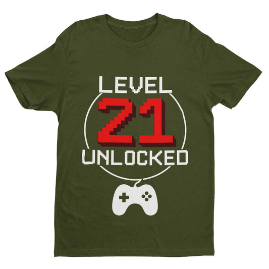 Funny 21st Birthday T Shirt Level 21 Unlocked Gamer Themed Gift Idea Gaming