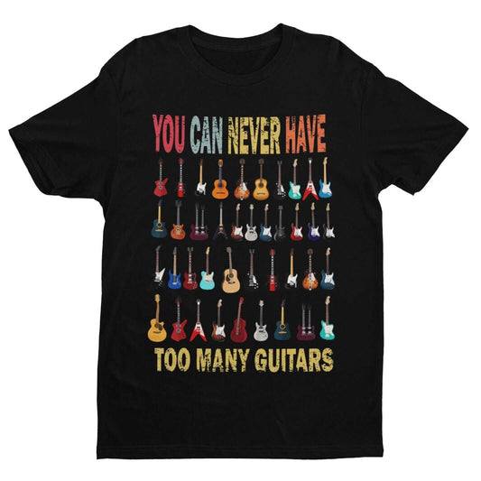 Funny You Can Never Have Too Many Guitars T Shirt Guitarist Gift Idea Musician Lots of Guitars