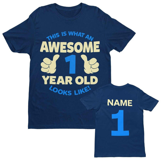 PERSONALISED Boys 1st Birthday T Shirt Awesome 1 Year Old NAME AND AGE ON BACK