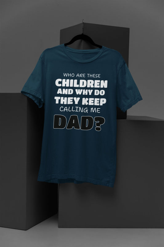 Funny Slogan T Shirt Who Are These Children And Why Do They Keep Calling Me Dad