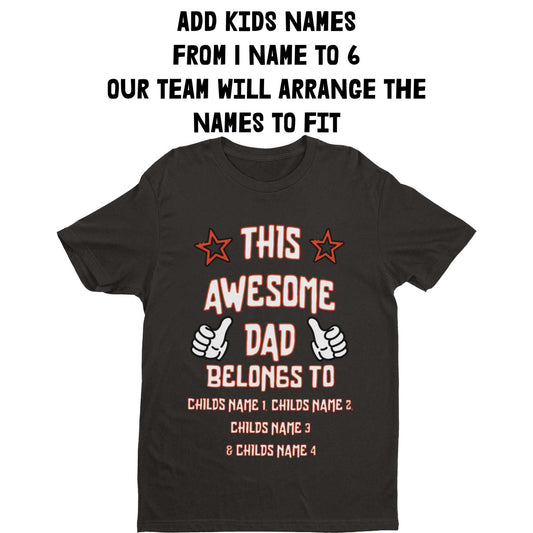 Personalised Dad T-Shirt "This Awesome Dad Belongs To" Add Kids Names Gift Idea