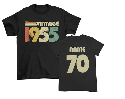 Personalised 70th Birthday in 2025 T Shirt Vintage 1955 Name on Back Gift Idea