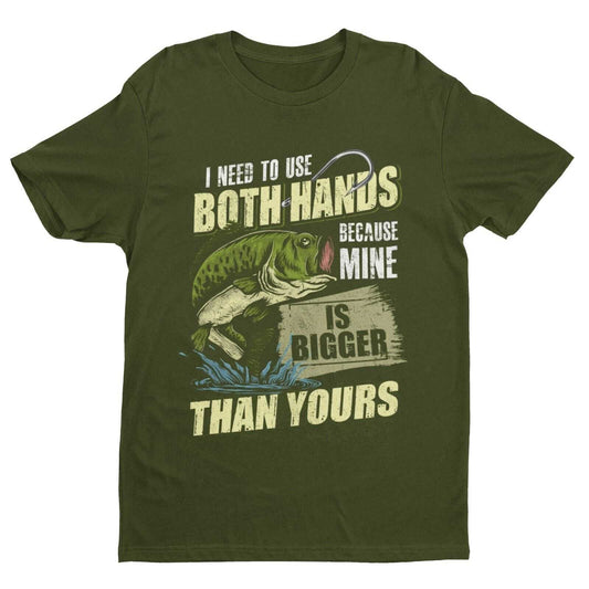 Funny Rude Fishing T Shirt I USE BOTH HANDS BECAUSE MINE IS BIGGER THAN YOURS