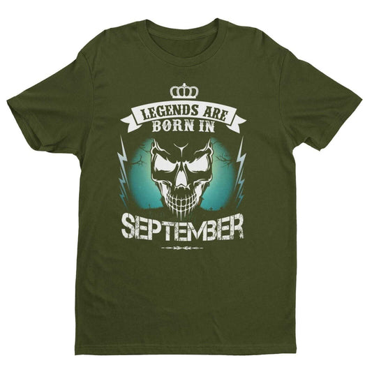 LEGENDS ARE BORN IN SEPTEMBER Funny Birthday T Shirt Gift Skull Novelty S - 6XL