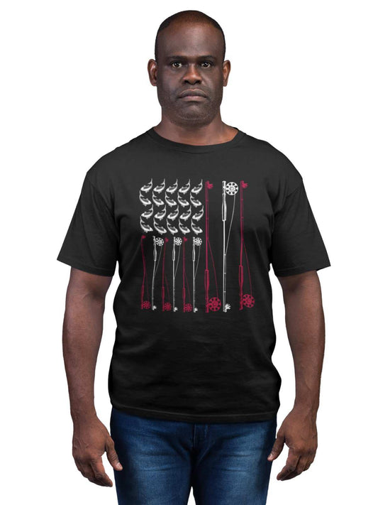 Fly Fishing T Shirt American Flag USA Rod and Reel Design Gift For Fisherman