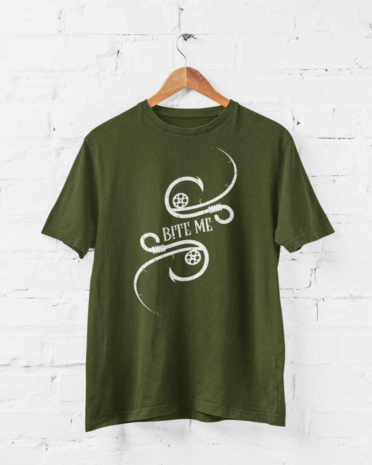Funny Fishing T Shirt BITE ME Hooks Sarcastic Gift For Fisherman Angler Dad