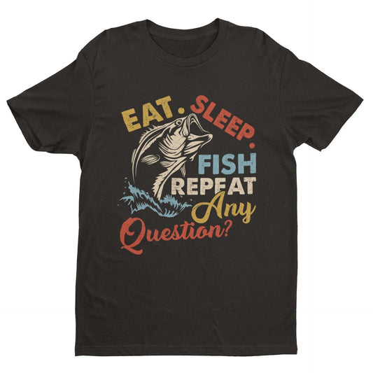 Funny Fishing T Shirt Eat Sleep Fish Repeat Any Questions Fisherman Gift Dad