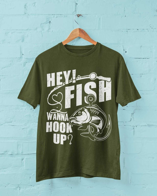 Funny Fishing T Shirt HEY FISH WANNA HOOK UP ? Gift For Fisherman Dad Angling