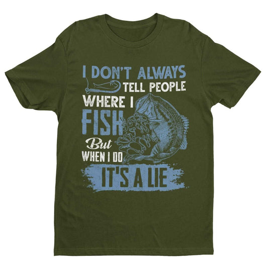 Funny Fishing T Shirt I DONT ALWAYS TELL PEOPLE WHERE I FISH WHEN I DO ITS A LIE