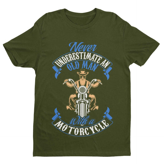 Never Underestimate An Old Guy On a Motorcycle Biker T Shirt Dad Funny Gift Idea