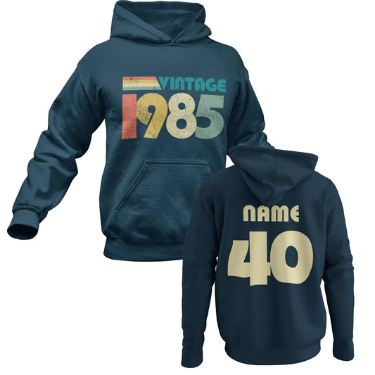 Personalised 40th Birthday in 2025 Hoodie Vintage 1985 with Name and Age On Back