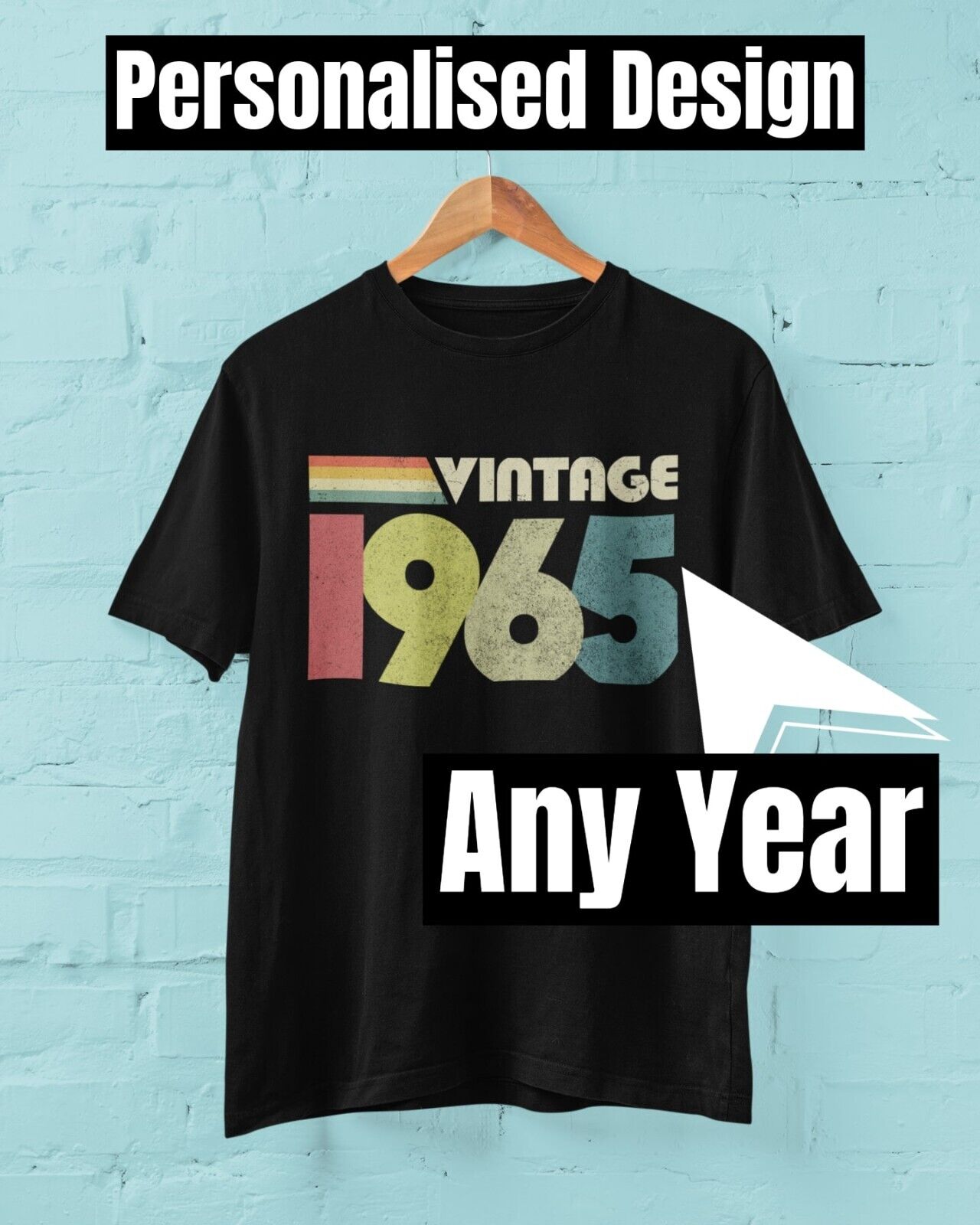 Funny Vintage ANY YEAR Retro Font Birthday T Shirt Personalised Gift Idea Funny