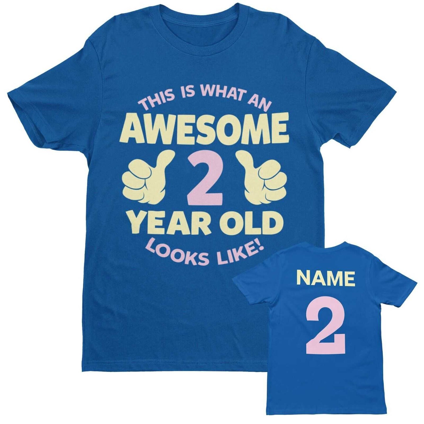 PERSONALISED Girls 2nd Birthday T Shirt Awesome 2 Year Old NAME AND AGE ON BACK